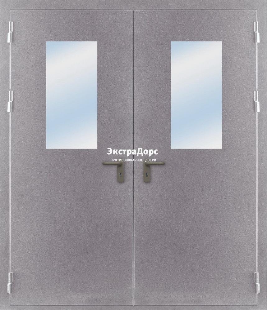 Двупольная огнестойкая дверь с решёткой EI 30 ДО-02-EI-30 двупольная остеклённая с иллюминаторами и антипаниками