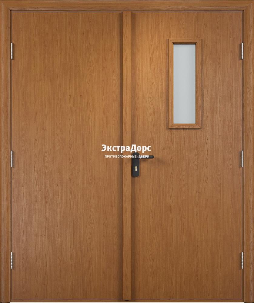 Двупольная противопожарная дверь ДМП-01-30 двухстворчатая со стеклом дуб в Ступино