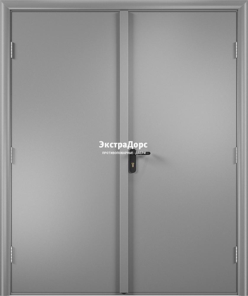 Металлическая противопожарная дверь ДМП-01-60 двупольная серая с замком