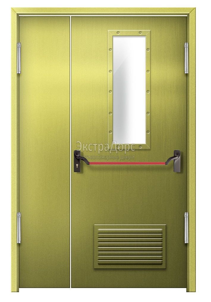 Противопожарная дверь EI 60 дымогазонепроницаемая стальная со стеклом, антипаникой и решеткой в Ступино
