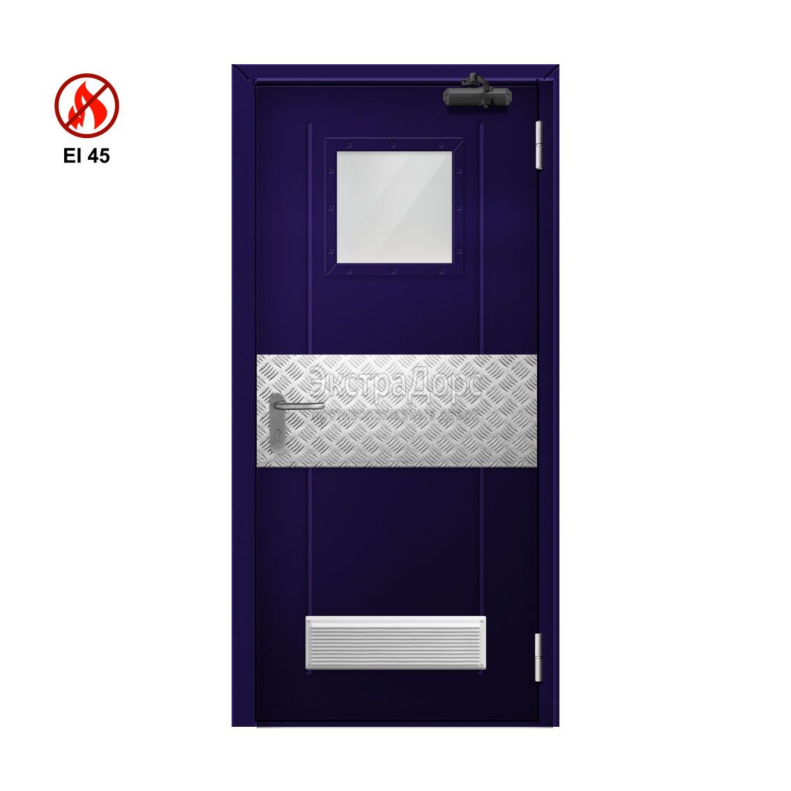 Противопожарная дверь EI 45 ДОП-01-EI45 ДП146 однопольная остекленная с решеткой в Ступино