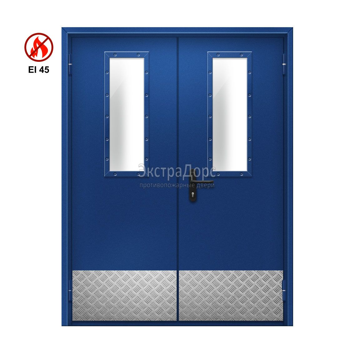 Двухстворчатая огнеупорная дверь EI 45 ДОП-02-EI45 ДП126 двупольная остекленная