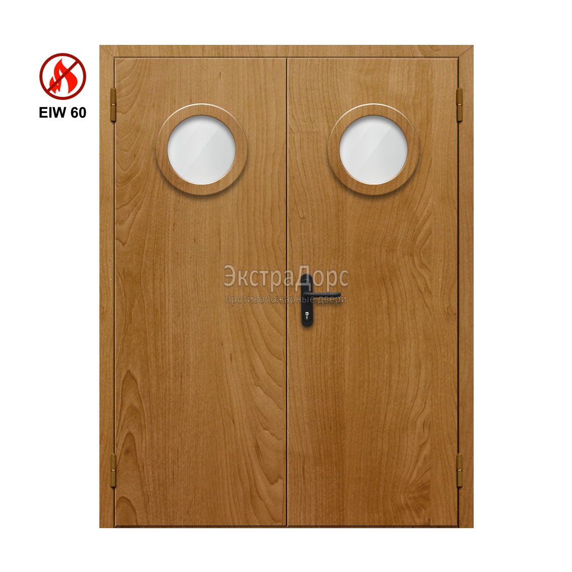 Двухстворчатая огнестойкая дверь с отделкой из МДФ EIW 60 ДОП-02-EIW-60 ДП45 двупольная остекленная в Ступино