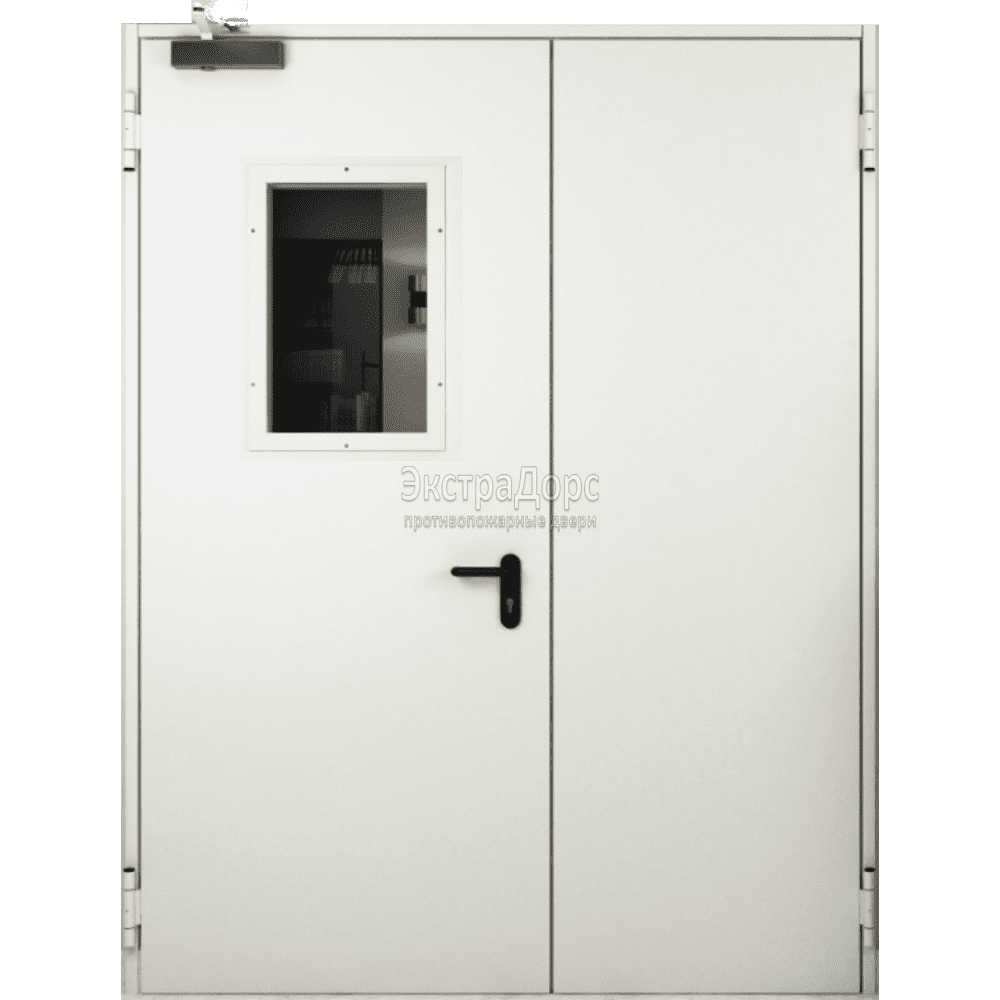 Двухстворчатая противопожарная дверь EIW 60 стальная с остеклением в Ступино