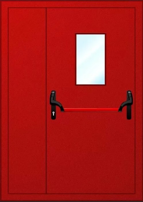 Дверь противопожарная полуторная правая со стеклом в Ступино