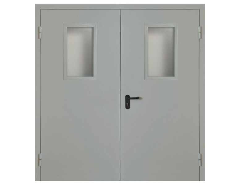 Противопожарная дверь EI 90 двупольная с остеклением c выпадающим порогом
