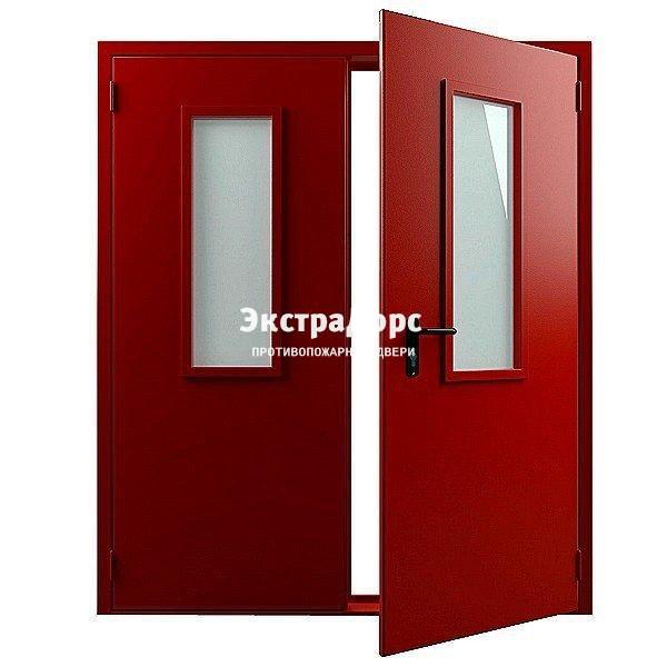 Противопожарная дверь EI 90 двухстворчатая красная c выпадающим порогом со стеклом в Ступино