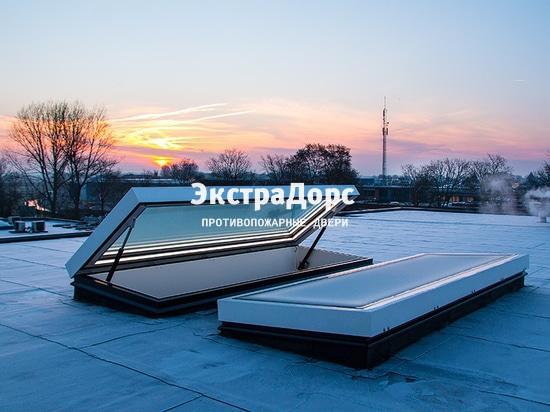 Черный противопожарный люк на кровлю с прозрачной крышкой