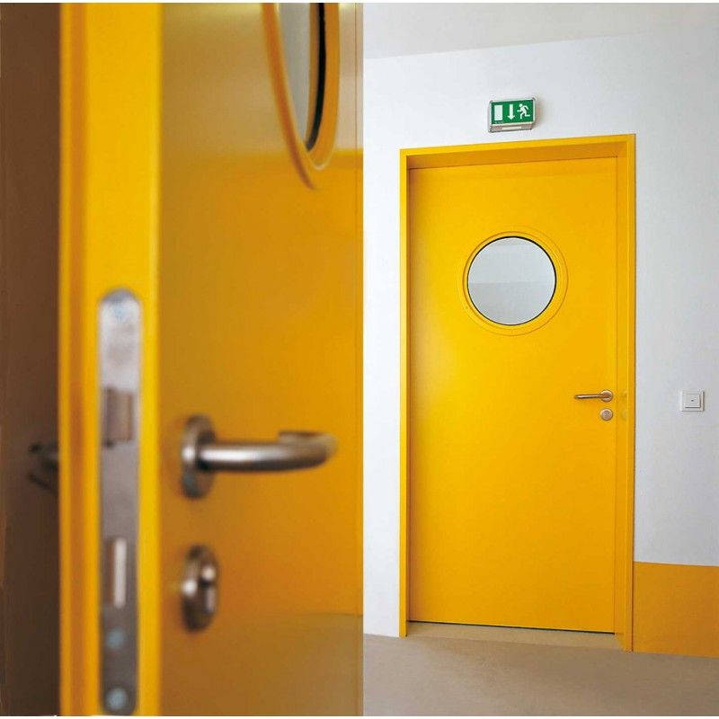 Противопожарная алюминиевая дверь со стеклом желтого цвета в Ступино